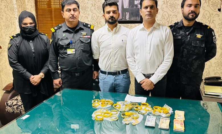 ان احکامات کی روشنی میں ایڈیشنل کلکٹر کسٹمز ائرپورٹ فیصل خان نے بین الاقوامی ڈپارچر لاو¿نچ پر تعینات کسٹمز کے عملے کو پہلے سے زیادہ متحرک رہنے اور تمام وسائل کو بروئے کار لاتے ہوئے اس ممکنہ اسمگلنگ کو ناکام بنانے کی ہدایات دیں اور خود بھی اس عمل کی نگرانی کی گزشتہ شام کراچی سے براستہ دبئی جنوبی افریقہ جانے والی فیملی کو روک کر ان کے سامان کی تلاشی لی جس کے نتیجہ میں ان کے قبضہ سے 19 کروڑ روپے مالیت کے 9.5 کلو گرام سونے کے زیورات اور سکے برآمدہوئے جیسے تحویل لے کرملزمان کو کسٹمز ایکٹ کے تحت مقدمہ درج کر گرفتار کر لیا ہے
